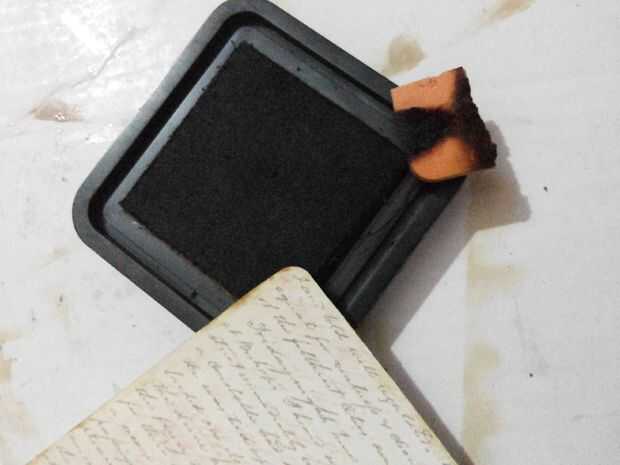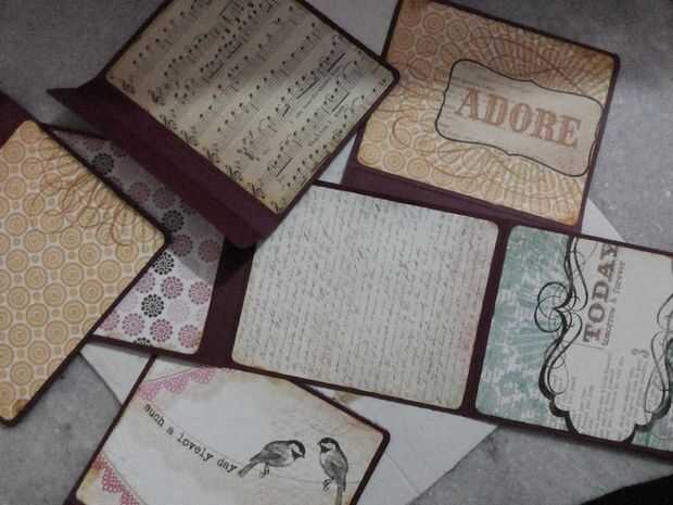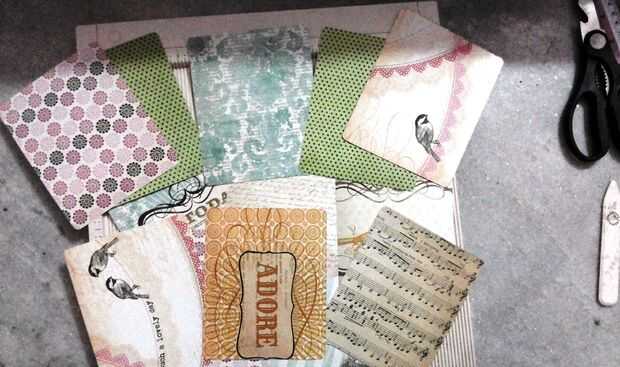 Tinta a los bordes del papel de patrón y pegarlas a la base del álbum y las aletas.