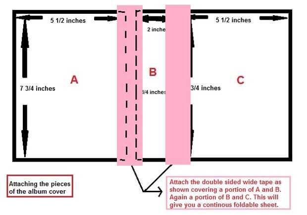 4. luego pegar una cinta echada a un lado doble a cada borde de la pieza de la espina dorsal (B) para fijar a los bordes interiores de la A y C las piezas respectivamente, como se muestra en la figura 2. (La tira color rosa representa la cinta)