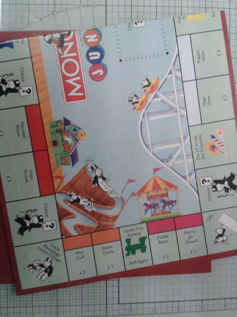 Lo primero que debemos hacer es construir las portadas de la revista grande, que contendrá todo lo demás. Para hacer esto necesita algunos buen tablero robusto. Usted puede comprar montaje en tablero o tablero de la espuma, pero mi favorito es el Consejo de un viejo juego de tablero. Si no tienes ninguno puede generalmente de origen les barato o incluso gratis de tiendas de caridad, maletero / etc. ventas de segunda mano. Una nota de precaución aunque - cualquier junta que utilice, asegúrese de que cabe en la ranura de la Unión máquina antes de que empezar a hacer!