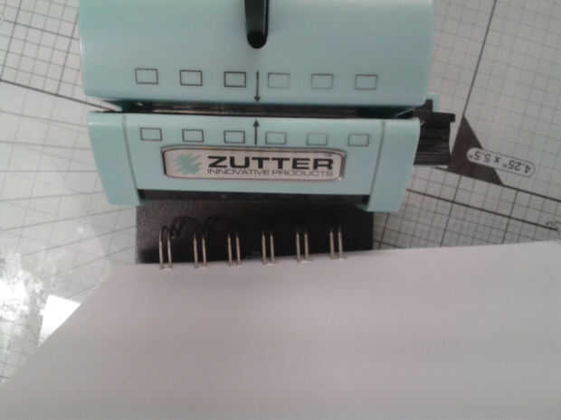 Para mi la máquina obligatoria, sólo las páginas de la ranura en la parte superior y tire de la palanca para hacer agujeros, deslícelas sobre los peines de alambre, luego apriete el cable en la ranura frontal para cerrar. Olvide atar la cubierta trasera en la parte delantera, a continuación, swing redondo en la parte posterior del libro tras el cierre de los cables, ya que esto da un acabado mucho más bonito, más limpio.