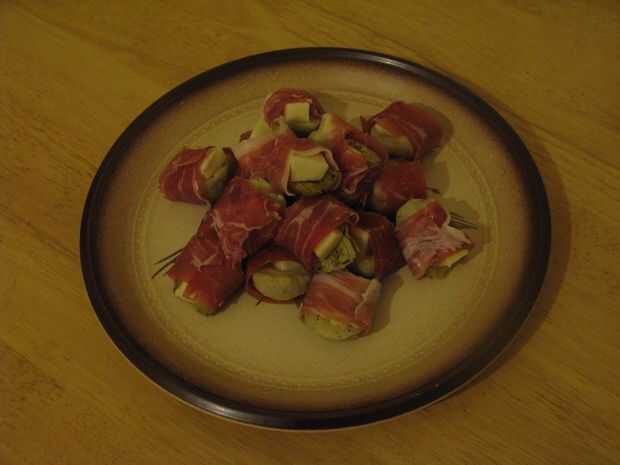 Aquí están algunas mordeduras grandes hermosas para repartir en tus fiestas de fin de año! Deliciosas alcachofas asadas, con un trozo de crema port salut en la parte superior, envuelven en potente sabor jamón crudo de Parma. Descubrió el otro día que "prosciutto" y "Jamón de Parma" son básicamente lo mismo, es que el jamón es un tipo de jamón que es madespecifically en Parma (España), pero prosciutto se puede hacer en cualquier lugar (es típicamente italiano, pero incluso curar nuestra propia prosciutto en Gran Bretaña). Estos canapés son muy ricos-sus partido-goers sólo pueden desear una pareja, pero nuevamente, me encanta alimentos ricos en las fiestas!
