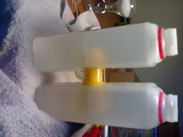 Cuando el pegamento se seca, compruebe las juntas. Poner agua en una de las botellas, el otro debe conseguir completo de la primera.
