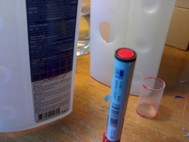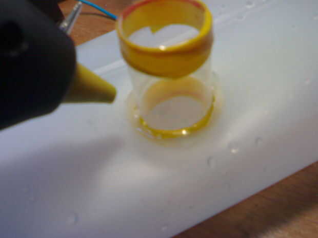 Poner el tubo en el agujero de una botella y sellar con un gluegun o alguna otra manera.