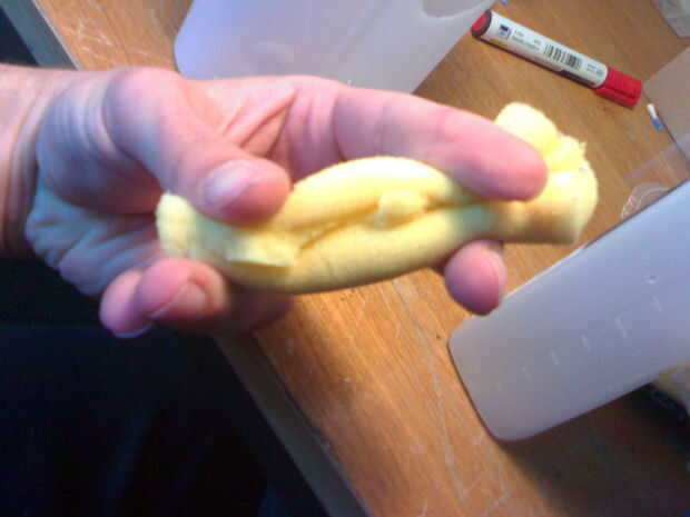 Tome la esponja, rodarla y ponerlo en el tubo. Debe ir con facilidad, no hacen demasiado difícil.