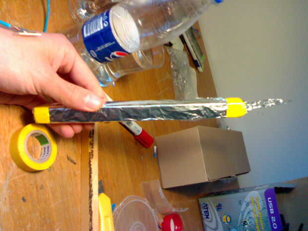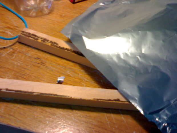 Si tienes cable de cobre tendido cerca o cualquier conductor sólido grueso, que utilice. Se de vuelta, papel de aluminio no es la mejor idea, porque se degrada y entonces tienes trocitos de aluminio flotando cerca. Y el electrodo era solamente para un solo uso. Si tiene moho en su conductor, saldrá también.