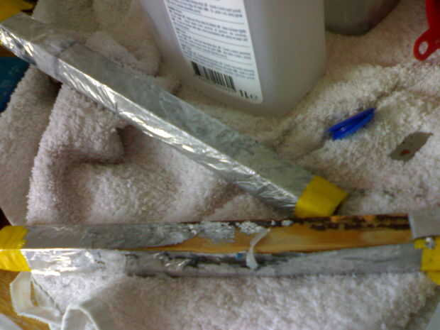 Adelante la foto muestra lo que sucedió con mi electrodos (manly uno positivo). Es por eso shoulden't use papel de aluminio.