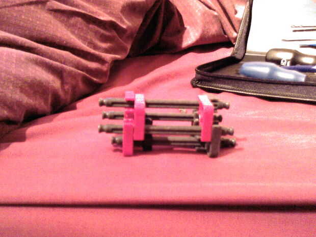 esto es algo que no le muestran cómo hacer cuando compre los conjuntos. Con menos de 15 piezas (y una banda de goma), esto puede disparar su munición es un buen 4 pies, dependiendo de cómo es fuerte la goma. También puede ser modificado para disparar