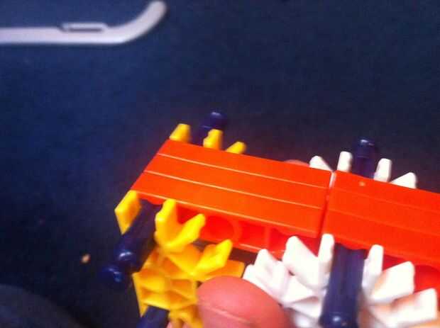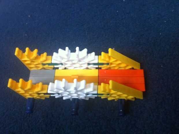 este rifle puede disparar quince pies con una banda elástica.Aquí están todas las partesBarras:5 rojo5 blancoAmarillo 319 verdeConectores:4 blanco10 gris oscuroNaranja 319 rojoAmarillo 22Paso 1: Cañón Estos son las dos partes para el cañónPaso 2: Mec
