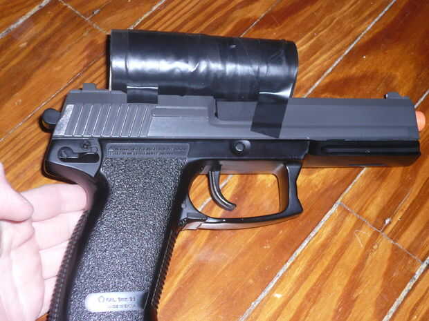 Para fijar el ámbito de aplicación, simplemente graba el alcance a la pistola. Si usted arma es real, un rifle de resorte, o un retroceso de gas/eléctrico, asegúrese de que la cinta se detiene "en la diapositiva" o se cinta la corredera de la pistola, que no es buena. Asegúrese de que el alcance es relativamente alineado con las vistas del hierro y disfrutar!