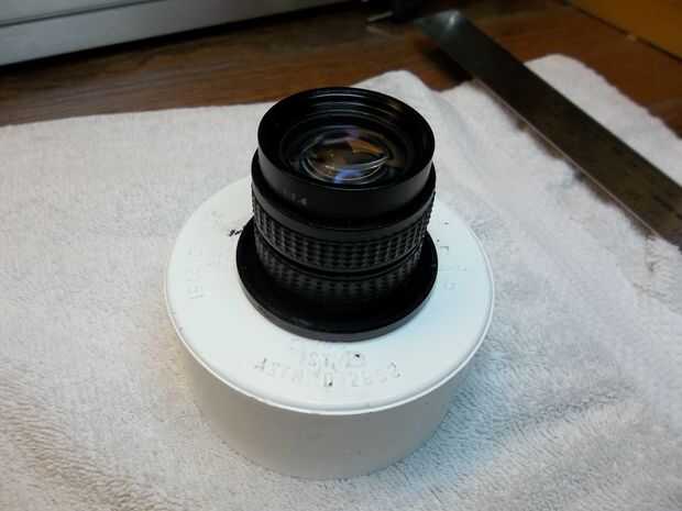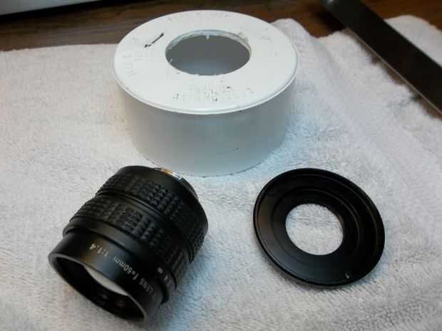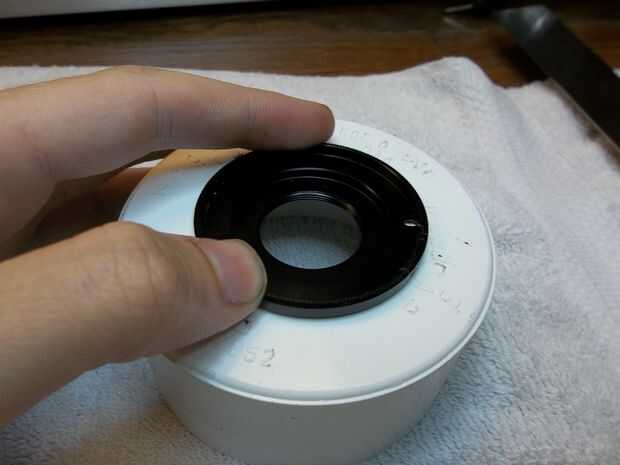 Para hacer el conjunto de objetivos, básicamente solo tienes que pegar tu Montura c-cs o cualquier adaptador de montura c que hayas elegido, taladro de un agujero para los hilos a través de la tapa, y el adaptador para la tapa del pegamento. Tornillo en tu objetivo y has completado la parte objetiva de la vivienda.