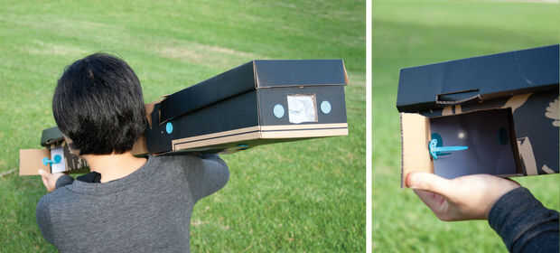 observar el tránsito de Venus, las manchas solares y otros fenómenos solares con este ámbito Solar, hecha de cajas de zapatos recicladas y Makedo piezas disponible en www.mymakedo.com.