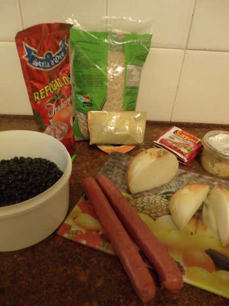 -smocked salchicha o picados de tocino, 1/2 taza (o ambos) - utilicé un tipo de salchicha que tenemos aquí, llamado "calabresa".