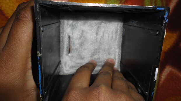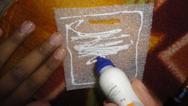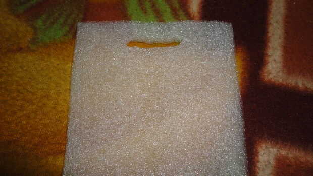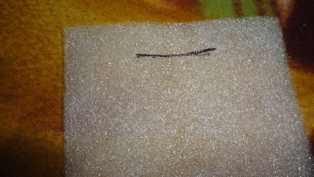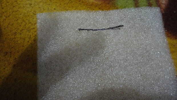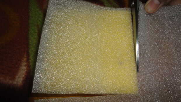 Luego tomar la hoja de la espuma y añadir relleno a los lados interiores de la hucha...