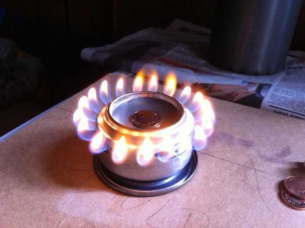 Una vez que haya rellenado con la cantidad de combustible deseada, cubrir el agujero superior con el céntimo y enciende el combustible en la base, esto calienta la parte inferior de la estufa y deje que el combustible dentro de inicio vaporizaba y lo que quiere.