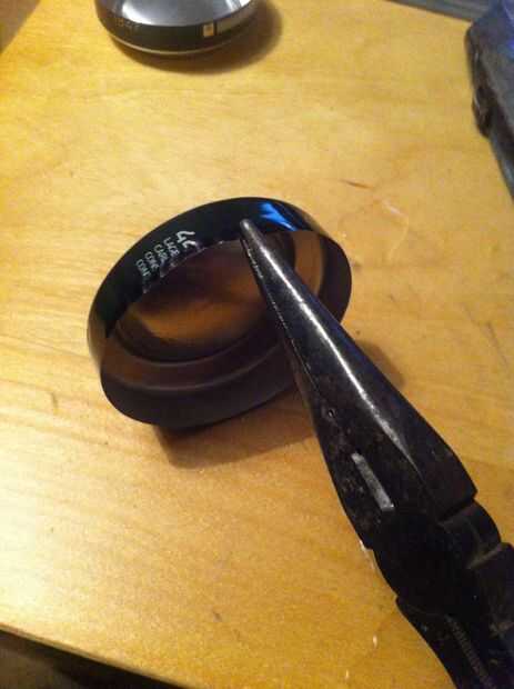 Ahora necesitamos doble el borde de la lata de base para que quede dentro de la lata superior, con su pinza ir alrededor del borde de la lata, agarre unos 5mm de la can en los alicates y giro para tirar el borde en completa esta cada 5mm o tan completamente redondo.