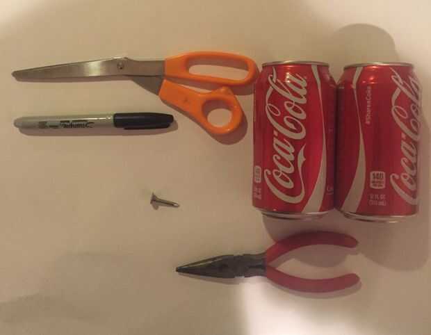 2. cuchillo / tijeras (o cualquier cosa que puede ayudar a corta las latas)