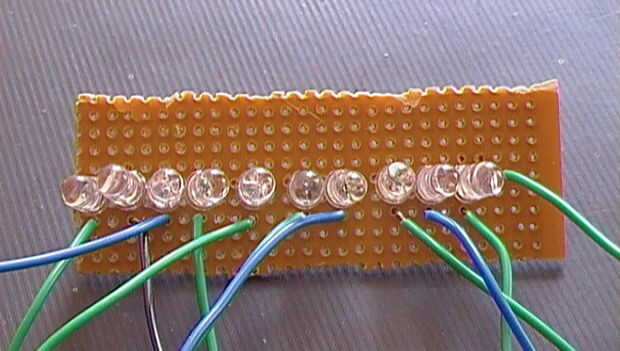 El circuito es bastante sencillo. Para conectar el sensor, tienes que conectar uno de los pin H + fuente de 5V (utilice una fuente de alimentación externa) y un a B Ground.Pin (cualquiera de ellos) se conecta a Ground.And perno A pin0 analógico arduino mediante potenciómetro de ohm de 100 k. Para hacer el trabajo de los LEDs, los he conectado en secuencia utilizando el Digital 2 Pins hasta 11 (diez LEDs total). Recuerde usar un resistor entre 220Ω y 470Ω para cada LED. I soldar los LED en una protoboard pequeño y había conectado un cable para cada LED que conectado los LEDs con arduino. Aquí vamos a utilizar una batería de 9v para alimentar el arduino y también de soldar un interruptor para que la alcoholemia se puede activar o desactivar. Usé un interruptor común para la alimentación de 5v y la fuente de alimentación de arduino. Ver la última imagen para el diagrama del circuito.