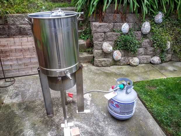 Primero una palabra en macetas, o como les llamamos, calderas de ebullición. Usted necesitará una olla lo suficientemente grande para un batch de 5 galones. Esto significa 5 galones, además el agua sobre que se pierde al hervir, además de algunos espacios vacíos para evitar que hierva. En alguna parte alrededor 32 cuartos de galón es bueno para nuestros propósitos. La caldera debe ser inoxidable no aluminio. Usted puede gastar $30 buck en una olla o $300 dólares en una olla. Al final, se utilizan para hervir el agua y la hierba. Usted puede incluso hacer un decente 15,9 galones hervidor cortando la parte superior de un barril de sanke. Se trata de un buen tamaño para lotes de 10 galones.