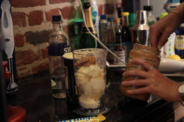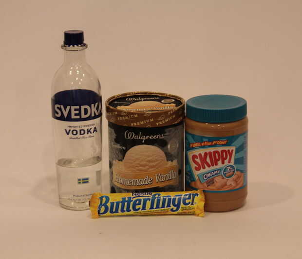 Coloque todos los ingredientes en una licuadora (o una licuadora de inmersión) y mezclar bien. Propongo romper la barra de chocolate antes de agregarlo. Además, medir el vodka antes de verterla. Yo estaba accidentalmente un poco generoso y esto salió muy fuerte (que no era tan agradable como podría pensarse).