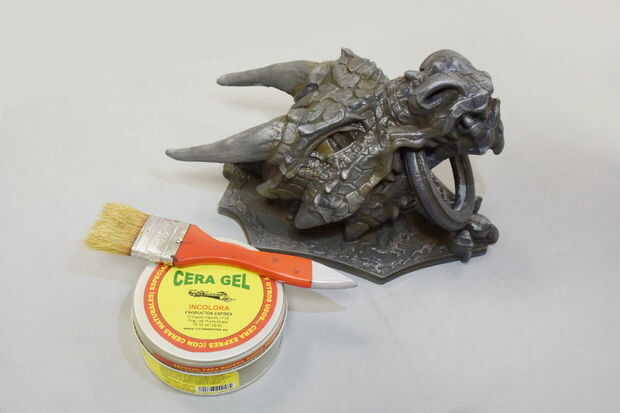 El último paso es aplicar cera y luego frotar la pieza con un paño o cepillo suaves. Así que set y detener el proceso de oxidación mientras que resalte el brillo metálico.