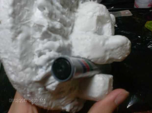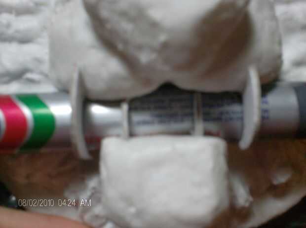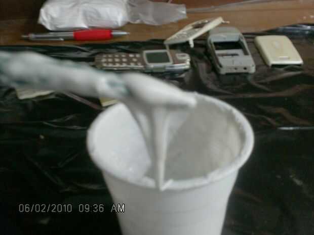 ahora lo cubren con una capa de mi fórmula personal de oogoo. silicón líquido y talco, talco de los pies pero esto es puro sin olor, se puede adquirir en farmacias. La diferencia con la oogoo del almidón de maíz es que ésta es prueba del agua y también barato. Esta goma hará que el golpeador más difícil hacer ruido contra la puerta