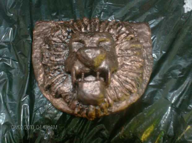 Para la pintura, primero una capa de pintura negra y luego una fina capa de pintura de bronce que no completamente cubiertas de la pintura negra.