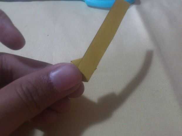1) tomar una pequeña tira de papel amarillo (el cociente de la anchura a la longitud debe ser aproximadamente 1:13).