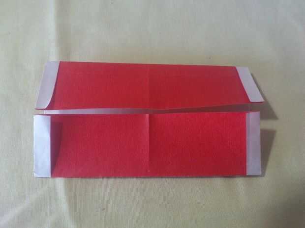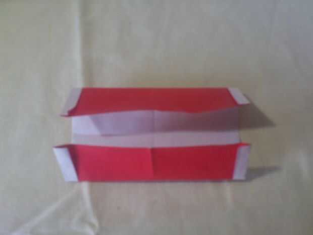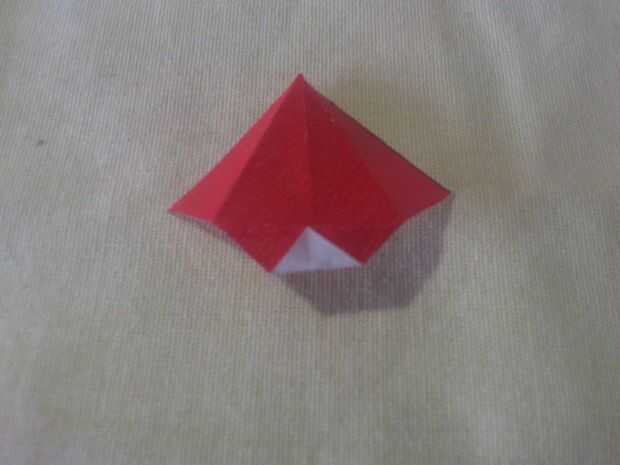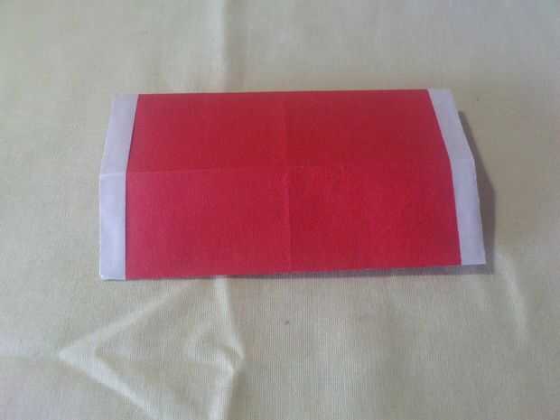 1) tome una hoja cuadrada de papel rojo y doblar un poco hacia adentro de los bordes.