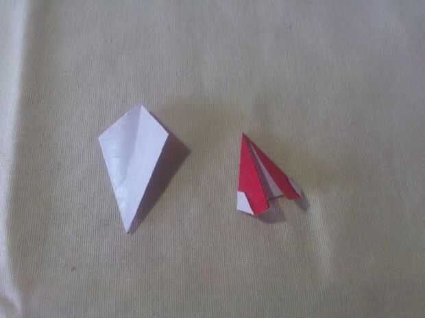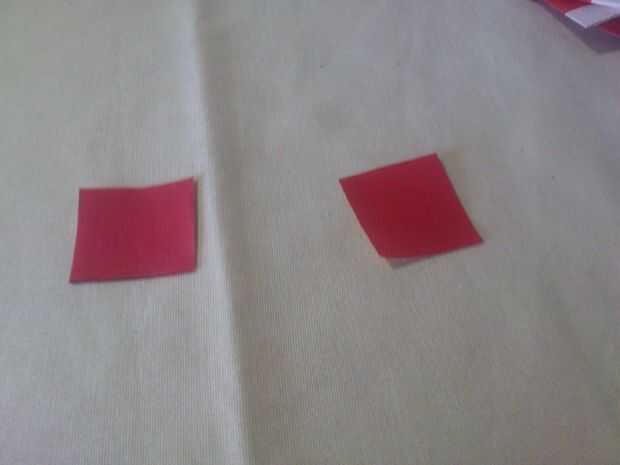 1) tomar un pedazo de papel que es 1/3 el tamaño del papel rojo original