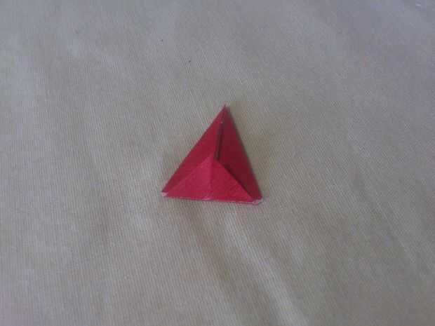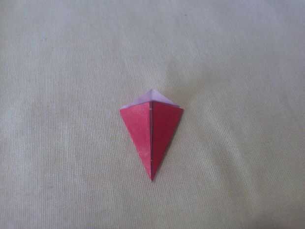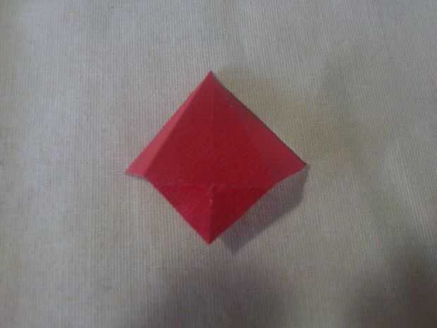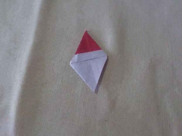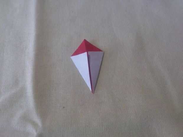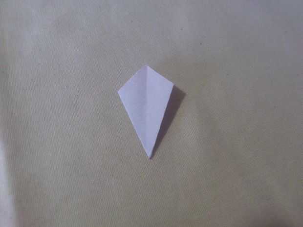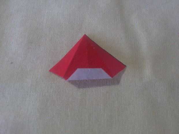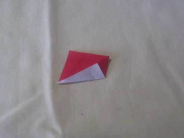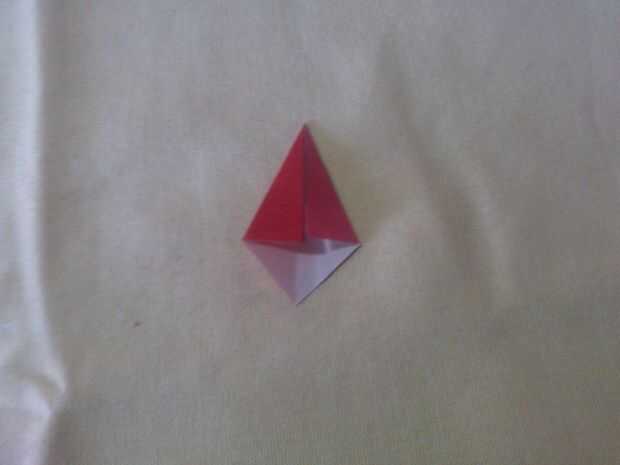 2) doblar por la mitad diagonalmente y tomar tanto los bordes y doblar hacia adentro a la línea central.