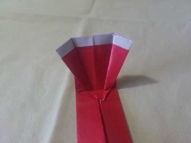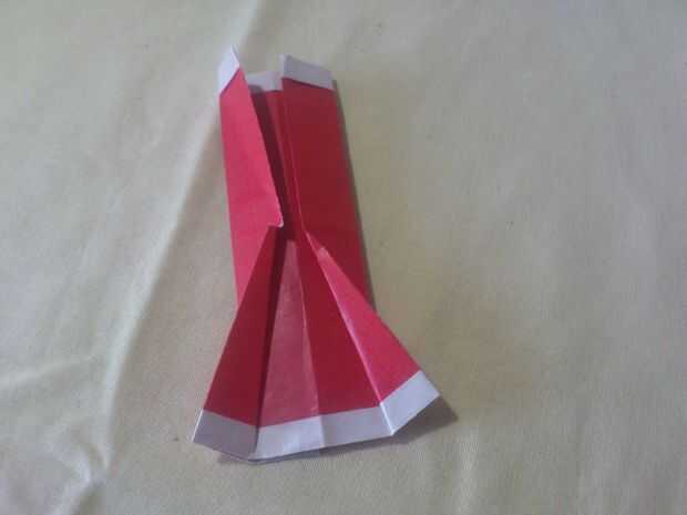 8) voltear el modelo y doblar los bordes hacia adentro.