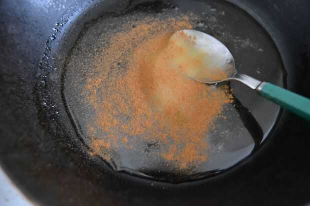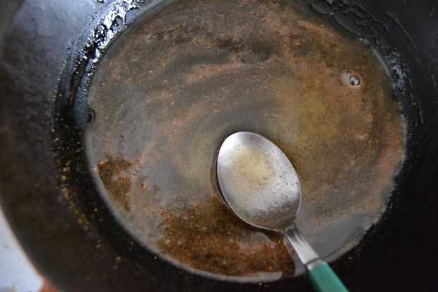 poner una sartén a fuego lento y añadir la miel y la canela, calor cuidadosamente hasta que la miel es licuada, pero no lo deje hervir realmente.