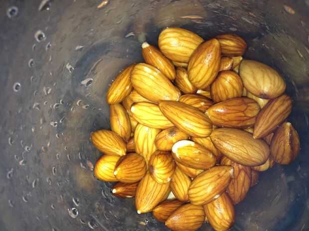 deje en remojo toda la noche hasta que las almendras se han hinchado