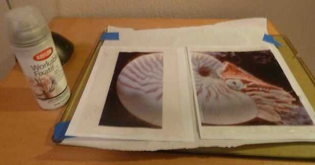 Rocíe la imagen con una capa de fijador realizable, que le permite luego trabajar con él, pintar sobre ella y protegerla. Soy químicamente sensible, así que utiliza una máscara resistente y rociarlo en el garaje o en el exterior. Deje que la imagen se seque y dispersan los vapores.