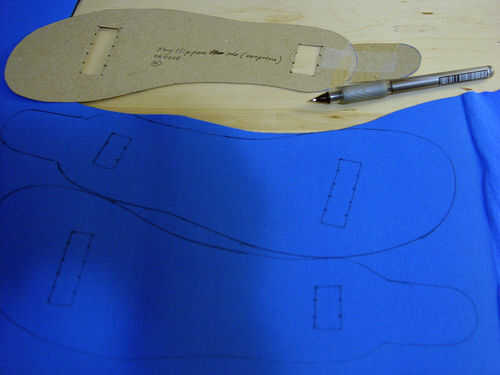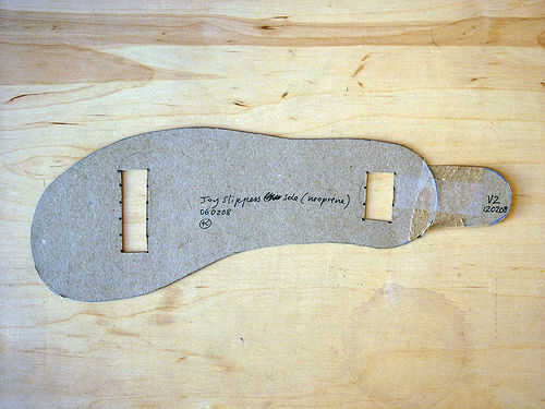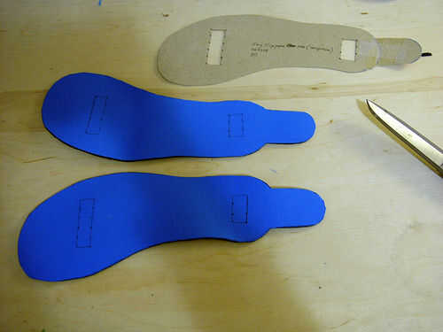 Trace la plantilla de pie en la ex-estática y recortarlo unos 5mm más pequeño integral. No incluyen la lengua.