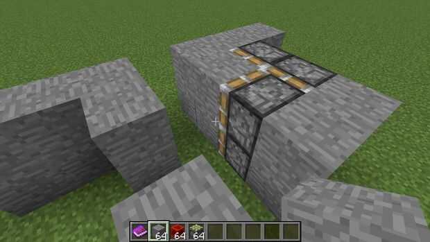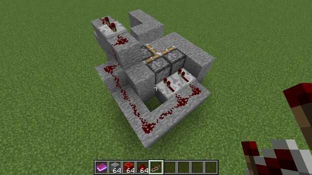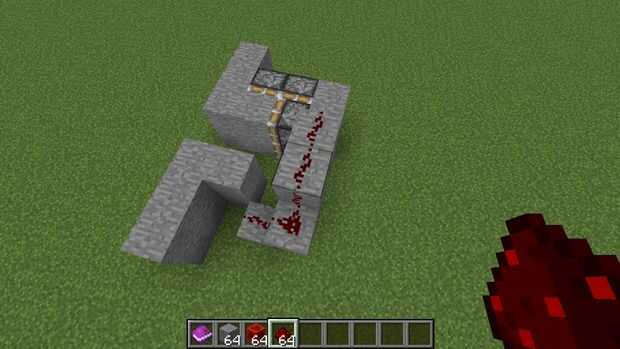 Para iniciar el diseño físico, primero necesita hacer cuatro pistones pegajosos, como en la foto. Usted deberá colocar dos pistones pegajosos y entonces el bloque se utiliza para ocultar la puerta como en la siguiente foto. Estoy usando piedra. Luego, realizar una pared y un pasillo. Mantener los dos bloques en el pasillo enfrente de los pistones pegajosos abierta como en la tercera foto. luego de alambre con un bloque detrás del espacio vacío, entonces uno junto y encima de, entonces en el pasillo con un repetidor en cuarto tick, luego lo conecte a los primeros cuatro pistones pegajosos, y asegurándose de que la señal no toque los dos pistones.