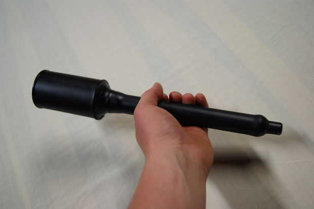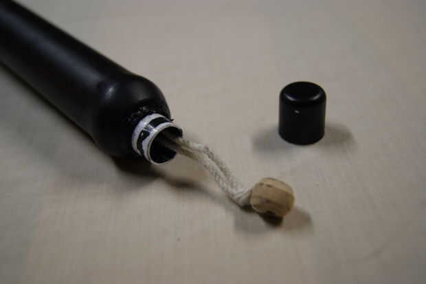 solo un apoyo de Granada de palillo básico, muy fácil de construir. La mata negra fue la única pintura que tenía, así que tuve que hacer. Es la lista de piezas: algunas tuberías de pvc, lata, tubo de protector labial, cadena y grano de madera. Derritió y había quemado el pvc con el aceite, se quema en la parte superior y en la parte inferior. Pegar la lata en la parte superior y el tubo de protector labial en la parte inferior.