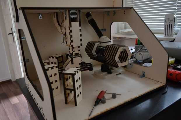 -dispositivo - recibe datos desde el servidor, interpreta y controla los motores de los datos de vídeo de dispositivo y arroyos * al servidor >> componentes principales: limitar el ChipKit Pro MX7, microscopio óptico con cámara de vídeo (Bresser Biolux NV), micro-motorreductores, motores paso a paso, conductores, interruptores y sensores.