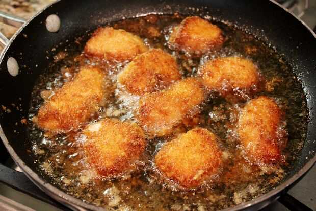 5. después de unos minutos, suavemente voltea uno de los nuggets para ver si es oro. Si su dorada y crujiente, del tirón todas las pepitas restantes. Cocinar el segundo lado durante otros pocos minutos.