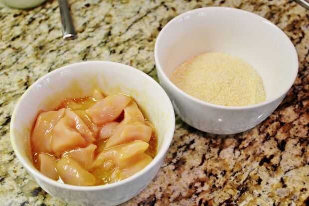 Notas: Normalmente sería hacer nuggets de pollo caseros con huevo en la corteza, porque es más fácil... pero si se alimenta una persona con una alergia de huevo, son increíbles!!!! Me hace feliz cuando todos los niños en una fiesta pueden comer la misma comida, sin cualquier persona que sienta dejado hacia fuera o diferentes. La mostaza de miel da los nuggets tal una patada del sabor sutil... no sabría estaba allí si no había cocinado los mismo.