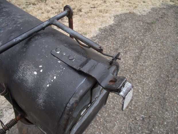 Un alfiler en el brazo de la bandera va en un agujero en la puerta. Soldó con autógena en una lavadora para el perno del brazo de bandera para entrar cuando la puerta está cerrada. Yo pude han atornillado en una ficha de metal con un agujero en él. El brazo de la bandera es más pesado en el extremo con la bandera, por lo que despliega cuando se abre la puerta.