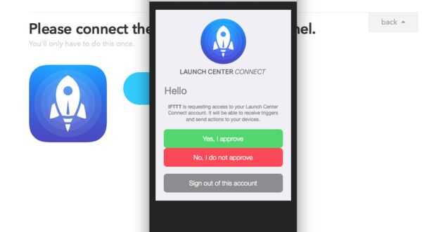 8) ya que estoy utilizando lanzamiento para notificación de alertas el próximo setp es para conectar el dispositivo a su receta. Por ahora usted debe tener instalado la aplicación IFTT Introduzca su IFTTT username y contraseña y pulse el signo en.