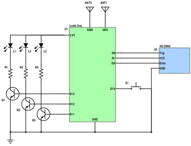 LinkIt uno puede sólo suministrar un par de mA a través de sus pines GPIO, así que usamos transistores para manejar los LEDS. Elegí un BC5468 pantano estándar con una resistencia de ohm k 2.2 en la base.