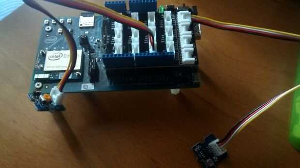 En primer lugar, debe conectar el blindaje Grove Base Edison Board de Intel.