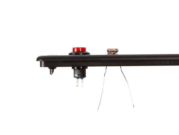 Insertar los dos hilos de la fotorresistencia en los agujeros 1/16 perforados en la parte frontal del recinto. Pegamento en su lugar.