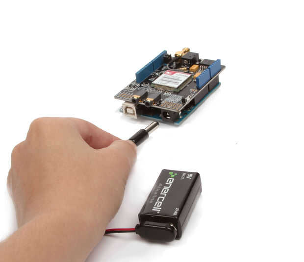 Ajuste la pantalla GPRS/GSM en la parte superior el Arduino y enchufe el conector tipo M en el Arduino.