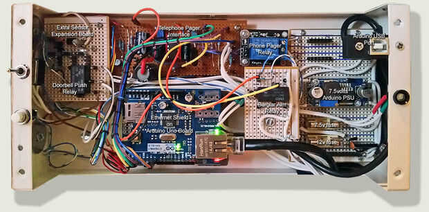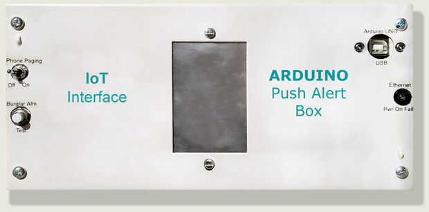 Utiliza un Arduino Uno y Shield Ethernet basadas en el chip Wiznet W5100 para enviar alertas push en detector de humos, activaciones de alarma y timbre de la puerta antirrobo vía PushingBox. Todas las alertas de pasar por alto defectos de situaciones y el cableado que dan rápido varias activaciones. Esto evita que enormes cantidades de falsos mensajes de alerta enviados a su teléfono móvil. Las alertas también pueden estar vinculadas a cualquier cámaras web instaladas en su casa u oficina. Esto se hace vía la interfaz PushingBox. La lista de servicios de PushingBox incluye todos los tipos de teléfono (Android, Windows y Iphone), computadora (Mac, Windows PC y Chromebook) y también incluye correo y twitter. Si utilizas Pushbullet, alertas también se repiten en su PC/Chromebook y muy pronto en Mac OS.