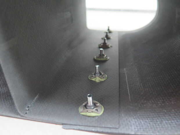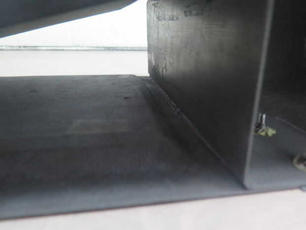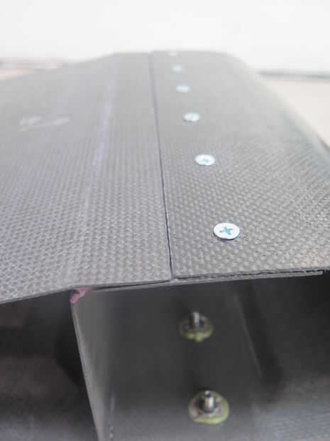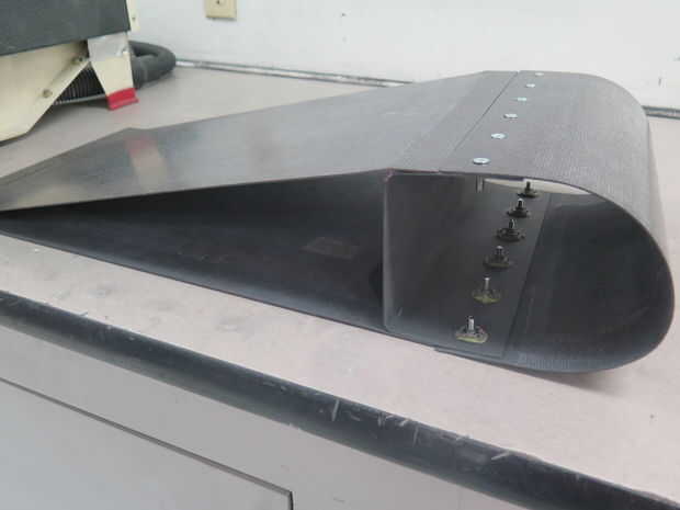 Esta aleta de avión contiene cuatro piezas que estén adheridos con adhesivos y sujetadores. El borde inferior y superior los paneles contienen base de panal. El mástil en el medio no contiene una base de panal y solo contiene capas de fibra de carbono.