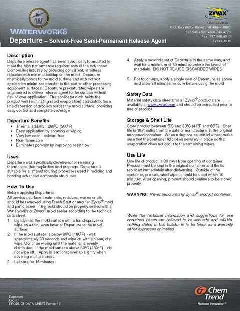 El molde es limpiado, sellado y listo para el lanzamiento de molde. Aplicar Agua salida (FreKote B-15 disolventes o 700-NC es también una buena opción).