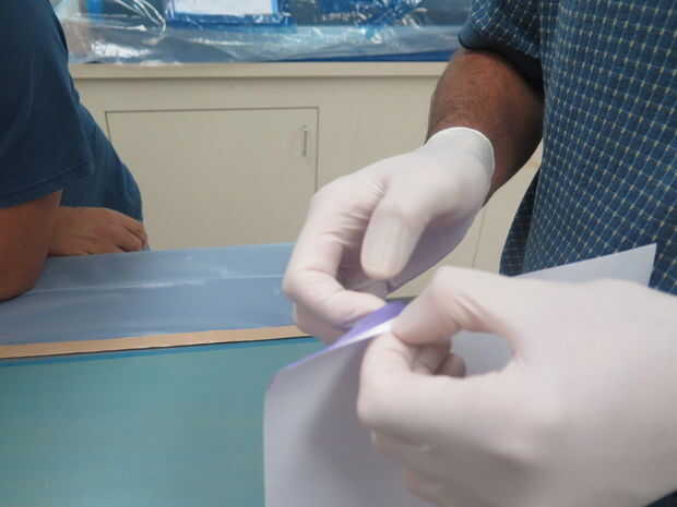 Paso 34: Preparación de la base del molde - aplicar el adhesivo de la película
